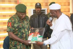 The COAS was accompanied in his visit to the state by the Chief of Operations (Army), Maj Gen Olufemi Akinjobi, General Officer Commanding 1 Division, Maj Gen Kabiru Muhktar, Provost Marshal (Army) Maj Gen Robert Aiyenigba and Chief of Military Intelligence, Maj Gen Ibrahim Salihu.