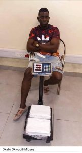 The drug was discovered in the toilet of the airport on Friday 12th November after it was dumped there by a trafficker who was obviously scared of being caught by narcotic officers positioned at the airport. The following day, Saturday 13th November, the actual owner of the consignment, Okafor arrived the airport from Brazil via an Ethiopian Airline flight and was promptly arrested. While being interviewed in custody, he confirmed he is the owner of the seized illicit drug.
