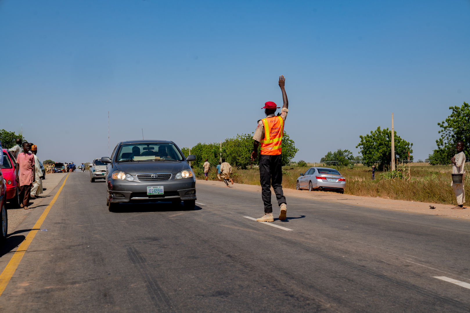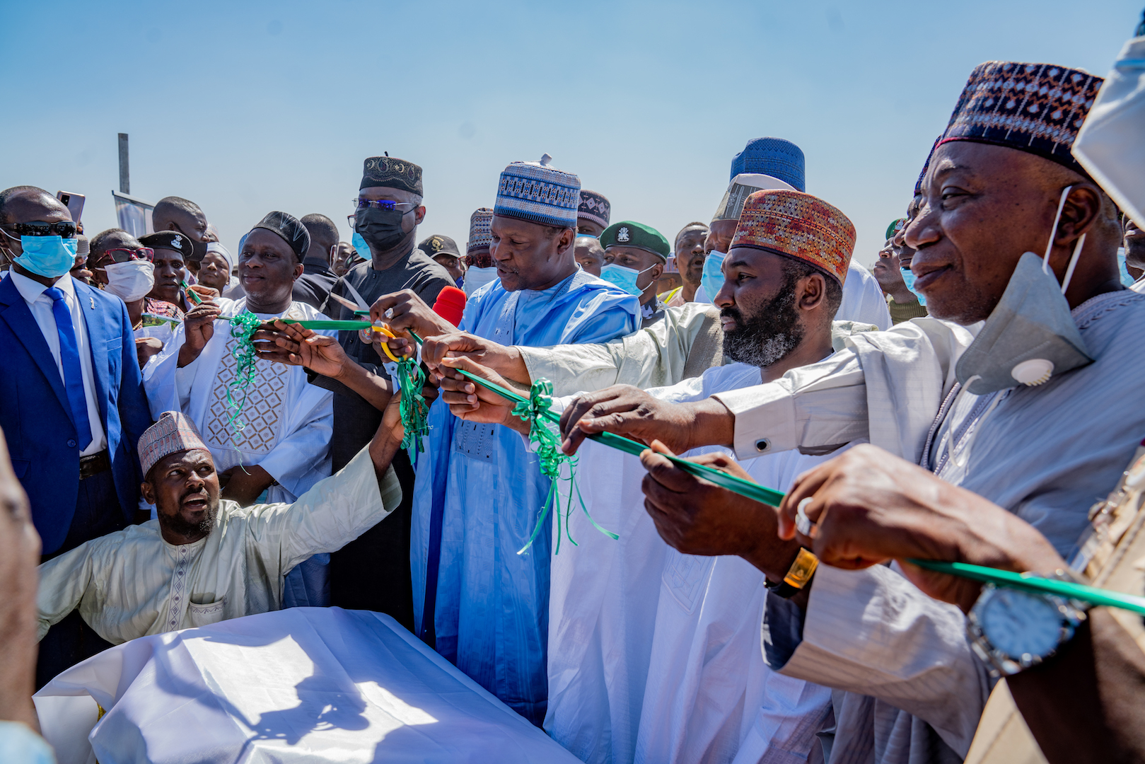 A view of the  Sokoto – Tambuwal -Jega – Kontagora – Makera Road Phase I & II in Sokoto and Kebbi States during its Commissioning and Handover by Representative of the President and Hon. Minister of Justice and Attorney – General of the Federation, Mr Abubakar Malami, SAN ,Hon. Minister of Works and Housing, Mr Babatunde Fashola, SAN,  Governor of Kebbi State, Mr. Abubakar Atiku Bagudu, Chairman, Senate Committee on Works and Senator representing Kebbi Central Senatorial District, Senator Adamu Aliero, Chairman, House  Committee on Works, Hon. Abubakar Kabir Abubakar and others during the commissioning and Handover of Sokoto – Tambuwal -Jega – Kontagora – Makera Road Phase I & II in Sokoto and Kebbi States on Thursday, 25th November 2021 at Koko/Bese LGA, Kebbi State.