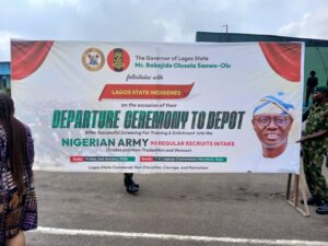 The Lagos State Government on Friday, 2nd January 2026, held a departure ceremony for candidates selected for the 90 Regular Recruits Intake (RRI) of the Nigerian Army at the T.A. Lagbaja Cantonment, Maryland, Ikeja. The event marked a significant moment for the state as it formally presented its young men and women who have answered the call to serve the nation through the military profession.