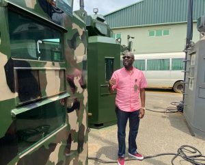 During the visit, the ES/CEO Balogun witnessed the production of security equipment such as armored hard body for vehicles, ballistic plates, helmets, vests, etc, National Association of Online Security News Publishers, NAOSNP can report. The equipment were made from scratch u…