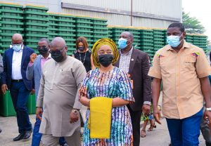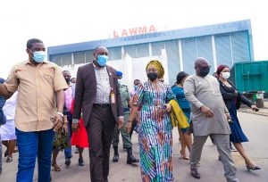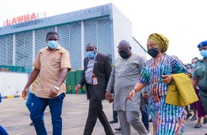 The Managing Director/CEO of the Lagos Waste Management Authority, LAWMA, Mr Ibrahim Odumboni has taken the First Lady, Lagos State Government, Dr Mrs Ibijoke Sanwo-Olu on a facility tour round the medical waste facility and bins’ showroom for an “Adopt-A-Bin” project at the LAWMA’s loading station in Lagos Island.