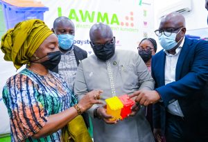 “With the Managing Director/CEO are; LAWMA’s Executive Director Finance, Mr. Kunle Adebiyi; Chief Technical Officer, Dr. Olorunwa Tijani; Director, Public Affairs, Mrs. Folashade Kadiri; Wastecare Solutions team, led by the MD/CEO.