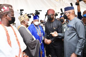 From right, Ogun State Governor, Dapo Abiodun; Oyo State Governor, Seyi Makinde; Akarigbo of Remo Land, Oba Babatunde Ajayi; Alake of Egba Land, Oba Adedotun Gbadebo and Olu of Ilaro, Oba Kehinde Olugbenle during the Ogun/Oyo Joint Security meeting held at Presidential Lodge, Abeokuta, Ogun State. PHOTO: Oyo State Government.