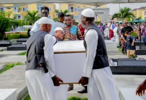 The body was later moved to the Ebony Vaults where Governor Babajide Sanwo-Olu and his deputy, Dr. Obafemi Hamzat, joined the crowd of mourners.