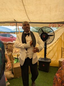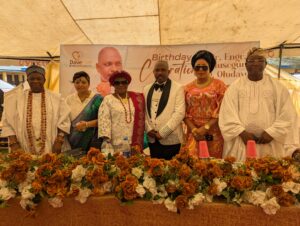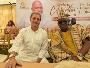 Following the interview, the event transitioned into a vibrant celebration. The crowd, predominantly dressed in white attire with blue and green headwraps, gathered under a large tent as a birthday song was sung for Dr. Oludayo. The atmosphere was both festive and heartfelt, with food distribution, empowerment tool giveaways, and free medical checkups forming key highlights of the day.